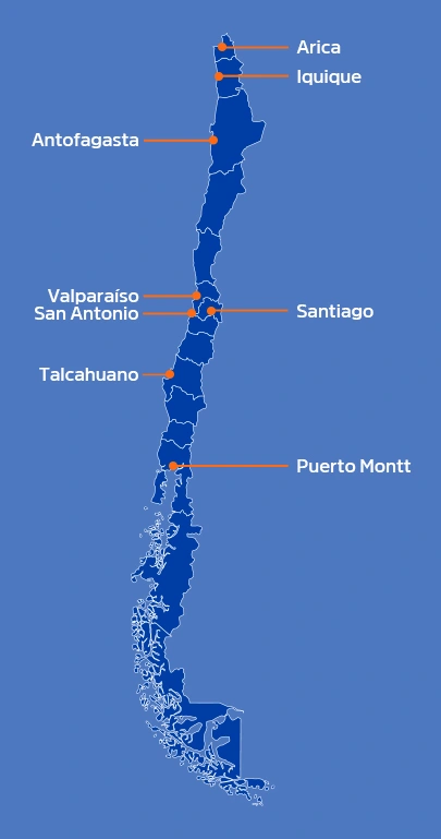 Nuestros terminales se encuentran a lo largo de todo Chile